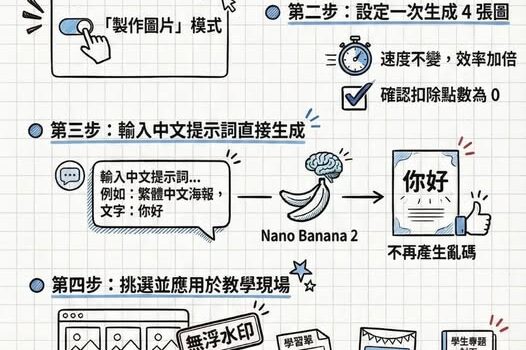 Gemini 免費版每天只能生 20 張圖?其實你還有另一條路! 上個月 Google 推出 N […] Nano Banana 2 生圖完全免費+無限張!在 Google Flow 一次生 4 張,老師做教材再也不怕沒圖用