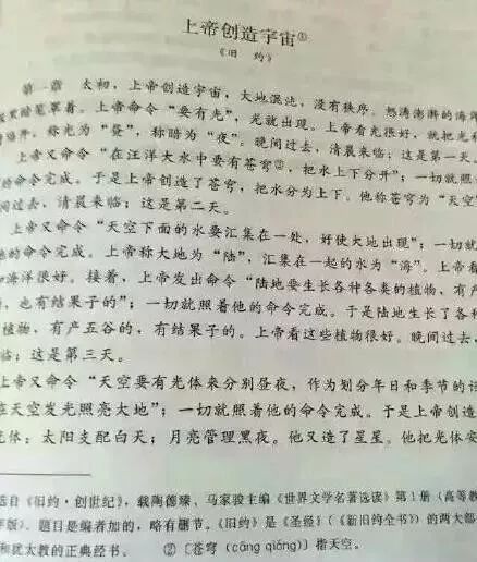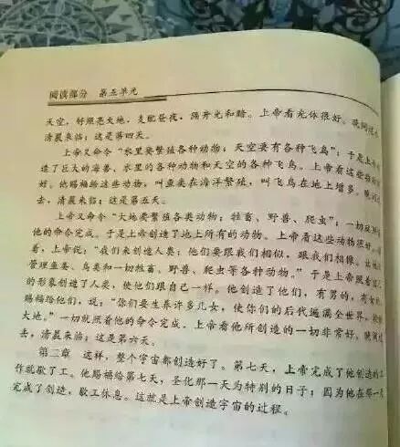 大陆将《圣经》写入全民义务教育,七年级语文课包含圣经创世纪详细内容……现今教育推翻了猴子演变人类的历史。事实就是事实,谁都取代替换不了的,人和宇宙万物是神造的。