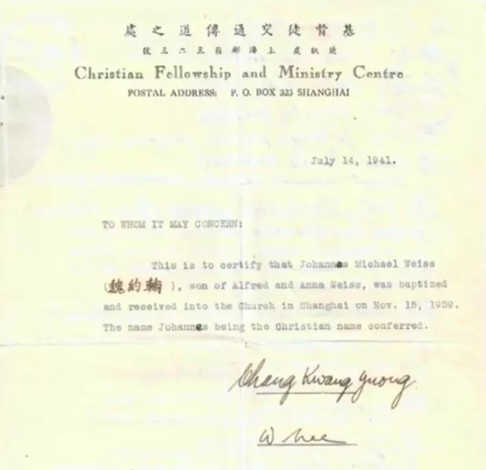 就在魏斯认为一切好转之际,日本军队入侵上海。他被捕囚禁并送往集中营。 监禁期间,他受到无数次死亡的威胁。然而,藉由读经并祷告这两件事,他得着加力。 直到二战结束,魏斯才返回维也纳。当这一切结束,他立刻展开了新的生活。 “他为自己的孩子写下了许多祷告。他祷告,‘愿我们早早认识神,并用全心拥抱信仰和神。’这是他最关切的事。”伊丽莎白说。 今天,当她漫步上海犹太难民博物馆,所有回忆历历在目。