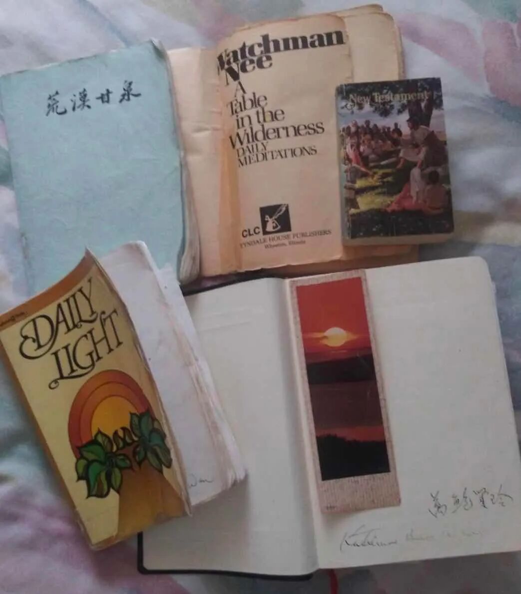 At the Shanghai Meeting Place on Nanyang Road, mother was exposed to many spiritual books, including “Autobiography of Madame Guyon”, Little Teresa’s “Love is the Shortest Way” , “Streams in the Desert” and brother Nee’s “Twelve Baskets Full”. Mother especially fell in love with “Streams in the Desert”. For nearly seven decades, mother often read the Bible twice a day, in the morning and evening. She also read “Streams in the desert”, “The Daily Light”, and Brother Nee’s “A Table in the Wilderness”. When we were young, under her influence, we also read these books that she bought for us. As we sorted out mother’s belongs after she passed away, we found many pocket-sized Bibles and “Streams in the Desert”. She often carried these books wherever she went, even if she was in a hospital or nursing home. These books were her spiritual food.