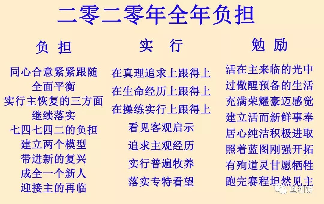 4  忠于四个实行(陪人晨兴,家中喂养,经营小排,擘饼申言)。