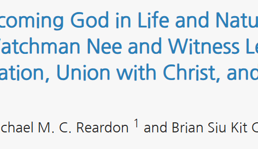 已发表 2026-01-20 Becoming God in Life and Nature:Watchman Nee and Witness Lee on Sanctification, Union with Christ, and Deification Becoming God in Life a […]