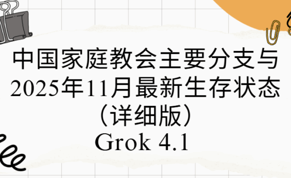 中国家庭教会主要分支与2025年11月最新生存状态(详细版) 以下是目前中国大陆家庭教会最主要的几大 […] Learning 中国家庭教会主要分支与2025年11月最新生存状态(详细版)—Grok 4.1