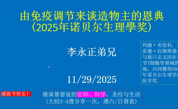 短讲: 由免疫调节来谈造物主的恩典 (2025诺贝尔生理學奖)