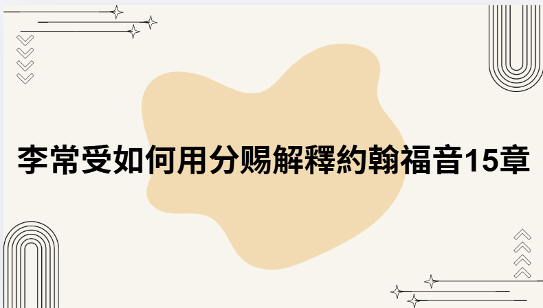 李常受读约 15 章时,基本是把“葡萄树与枝 […]