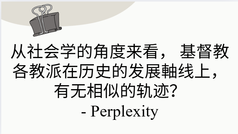 – 基督教各教派并非在神学与礼仪上走同一条路,但在“社会学逻辑”