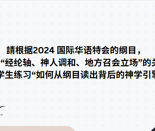 两者都反对“本质先于关系”的实体主义,转向“关系先于本质”。上帝的存在就是perichoretic关系事件; 太和的存在就是阴阳气化的感通事件。 - 实践/灵修层面的互补(华人神学家常见路径)