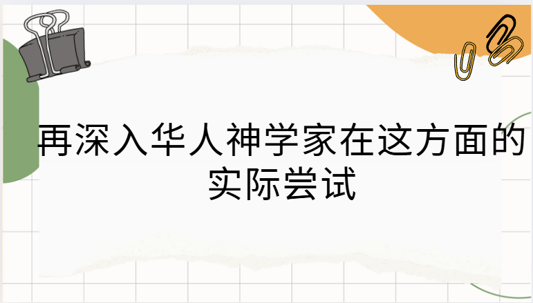 再深入华人神学家在这方面的实际尝试