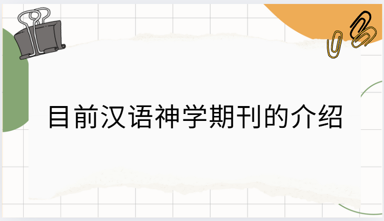 - 范围:系统神学、教会历史、实践神学等学术文章。
