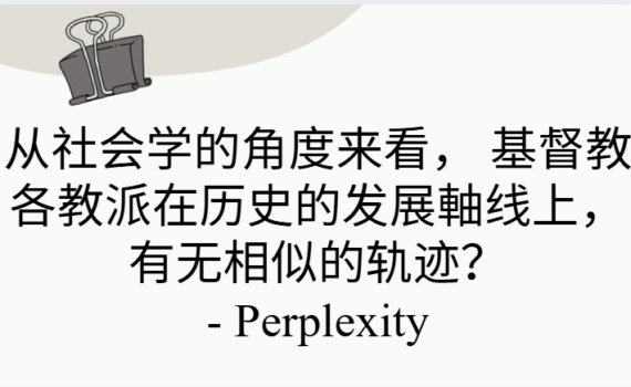 从社会学的角度,大多数基督教教派在历史发展上确实呈现出若干“相似轨迹”,而不是各走各路的全然偶然产物 […] Learning 从社会学的角度来看, 基督教各教派在历史的发展軸线上, 有无相似的轨迹?- Perplexity