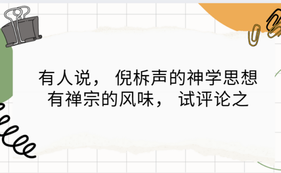 从现有研究与倪氏著作本身来看,说他“有禅宗的风味”可以在某些表面现象上找到类比,却难以在核心神学层面 […]