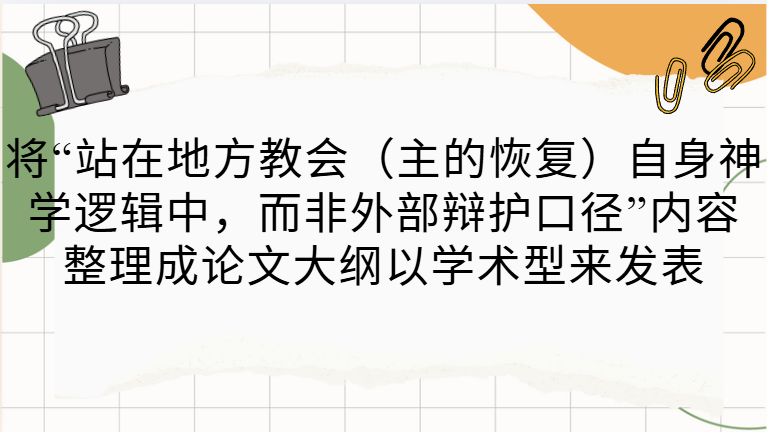 更像内部弟兄姊妹之间的交通。 - 我最后版本:保持学术-反思性语气,强调张力、不可消解的困境、