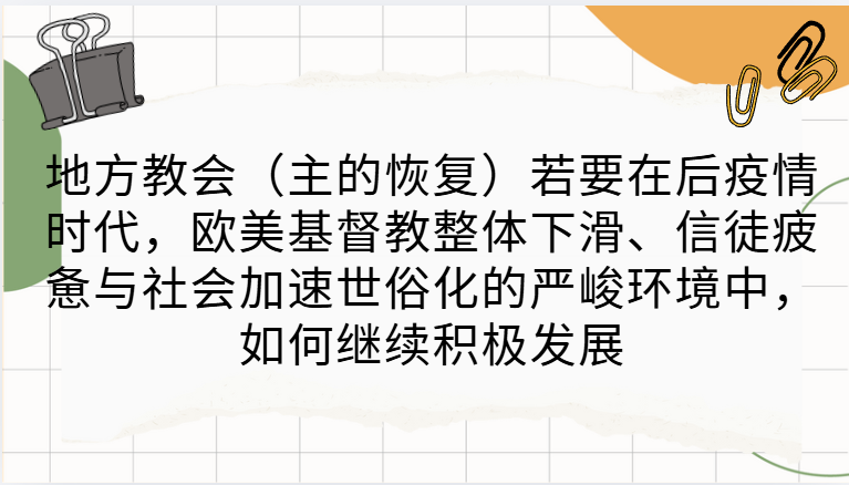 下面先点出欧美教会后疫情的几个关键挑战,再具体谈主恢复在此情境中可如何保持与展开其核心负担。