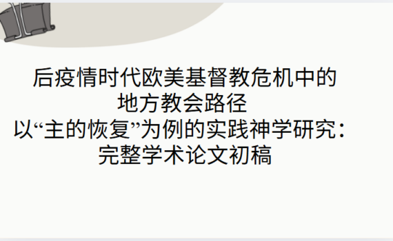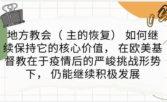 “地方教会”(也常被称为“主的恢复”)在后疫情时代,面对欧美基督教整体衰退、聚会模式改变以及社会世俗 […]