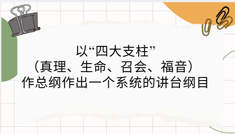 以下纲目以“四大支柱”(真理、生命、召会、福音)作总纲,