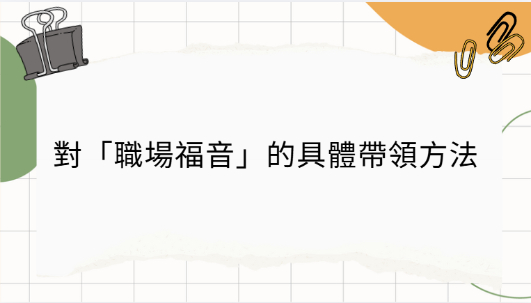 * 原因: 讓同事看到「信仰與職業成功」並不衝突,且能看到一個成熟、