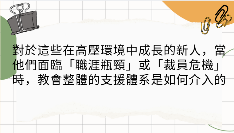 * 防止孤立: 裁員後最怕陷入封閉,教會會增加與新人的相調頻率,