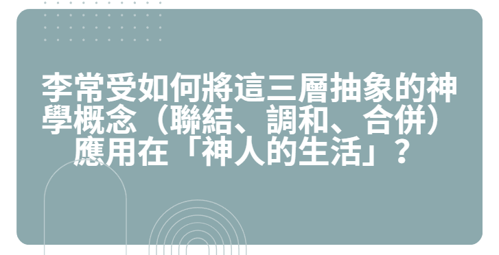 李常受將這三層抽象的神學概念(聯結、調和、合併),