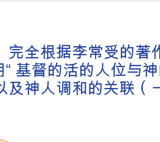恢复:基督的实现与内住[^4]