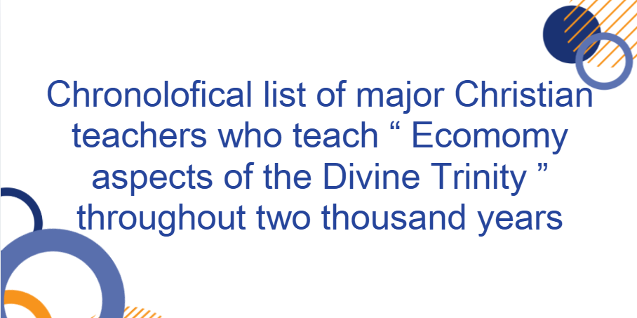 Below is a chronological, historically grounded list of major Christian teachers (post–New Testament, ~2000 years) who explicitly or structurally taught the economic (οἰκονομία) aspects of the Divine Trinity—that is, the Trinity as God’s self-disclosure and operation in creation, incarnation, redemption, and consummation, as distinct (though inseparable) from the immanent Trinity.