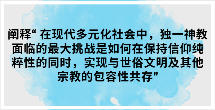 * 共存之道: “公域与私域的剥离”。信仰被重新界定为个人生活中的私德,而非强加于全社会的公德。宗教团体通过在法律框架内行使宗教自由权,而不是试图掌控立法权,来实现与世俗社会的契约式共存。
