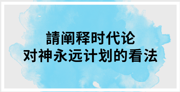 在时代论学者的眼中,神永远的计划像是一位伟大的总导演, 在历史的舞台上分幕(时代)进行。虽然每一幕的规则和主角( 以色列或教会)有所更替, 但最终的目的是为了在受造界中全方位地彰显神的多样智慧与绝对王 权。