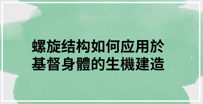 应用“生命—身体—历史”的螺旋式结构来思考基督身体的生机建造,可以帮助我们把个人属灵经历、教会实际和救恩历史连成一条不断上升的路径。[1][2][3]