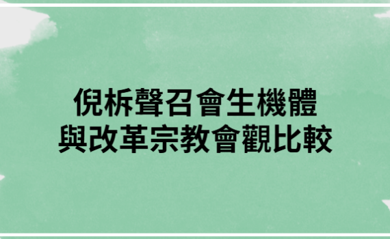 倪柝聲的“召會生機體”教會觀,與典型改革宗教會觀,在本質上都承認教會是基督的身體、在神永遠旨意中的中 […]