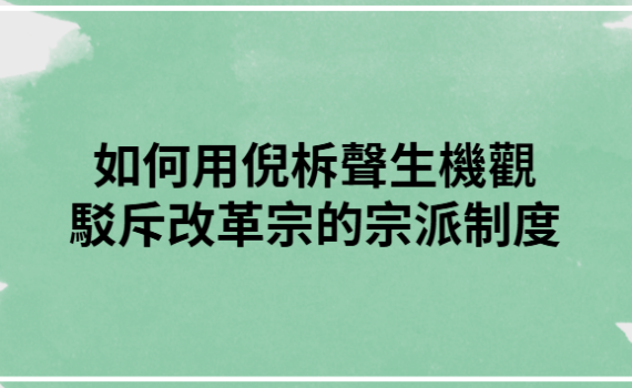 用倪柝聲的“召會生機體”直接去“駁斥”改革宗的宗派制度,容易把一個本來可以很有果效的教會論對話,變成 […]