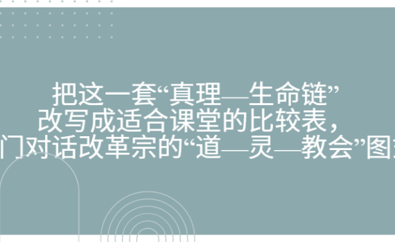 下面是一张适合课堂使用的比较表,把“真理-生命-召会-福音”的链条,放在改革宗常见的“道-灵-教会” […]