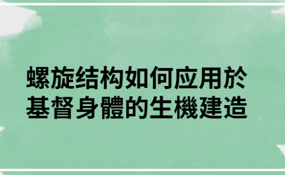 应用“生命—身体—历史”的螺旋式结构来思考基督身体的生机建造,可以帮助我们把个人属灵经历、教会实际和 […]