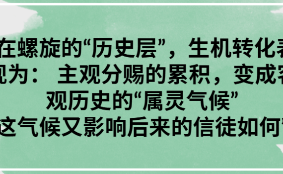 这句话要说明的是:在“螺旋”的历史层面上,个别信徒内在生命的实际经历与恩典积累,久而久之会凝聚成某一 […]