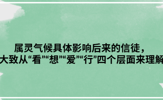 属灵气候具体影响后来的信徒,大致可以从“看”“想”“爱”“行”四个层面来理解。 ### 一、心灵感受 […]