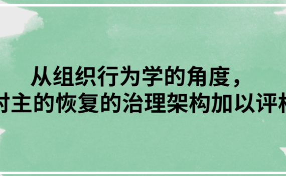 从组织行为学(Organizational Behavior, OB)的角度来看,“主的恢复”的治理 […]