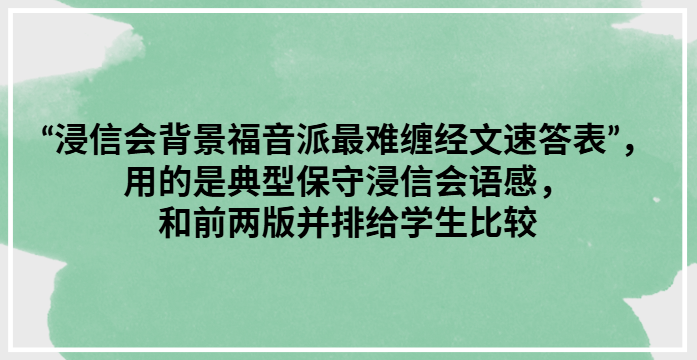 – 难点:既讲“埋葬复活”,为何不坚持只浸礼?