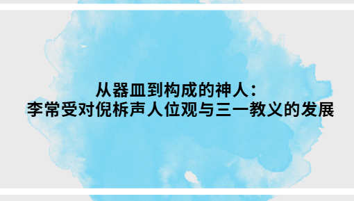 我并未重排三一论的规范次序,而是采取了一种方法论选择: