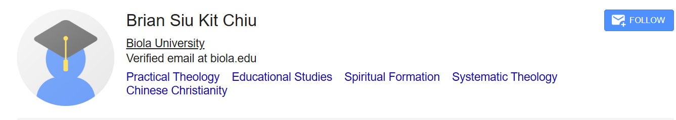 Brian Siu Kit Chiu(Biola University) 来自 Bethany|已发表 2026-02-04 Brian Siu Kit Chiu Biola University Verified email at biola.edu Practical TheologyEducational StudiesSpiritual FormationSystematic TheologyChinese Christianity Title Cited by Year Transformed into the Same Image: Constructive Investigations into the Doctrine of Deification MJ Gorman, VM Kärkkäinen, SH Hsiung, N Betz, M Gorman, LA Jervis, … InterVarsity Press 7 2024 The “God-Man Living”: Deification in Practical Theology MMC Reardon, BSK Chiu Religions 16 (4), 481 1 2025 Essence and Economy: An Introduction to Witness Lee’s Doctrine of the Trinity MMC Reardon, BSK Chiu The Journal of Theological Studies, flaf017 1 2025 Constructing a Model of Theological Education for Contemporary China: Retrieving Insights from Jia Yuming BSK Chiu InSights Journal for Global Theological Education, 45 1 2021 Becoming God in Life and Nature: Watchman Nee and Witness Lee on Sanctification, Union with Christ, and Deification MMC Reardon, BSK Chiu Religions 16 (7), 933 2025 Exploring the Educational Philosophy and Curriculum Design for a Theological Training Program: A Case Study SKB Chiu Biola University 2024 Book review: Following: Embodied discipleship in a digital age by J. Byassee and A. Irwin SK Brian Chiu Christian Education Journal 19 (2), 328-331 2022 Glittering Vices: A New Look at the Seven Deadly Sins and Their Remedies by Rebecca Konyndyk DeYoung SKB Chiu Spiritus: A Journal of Christian Spirituality 22 (2), 322-324 2022 Book Review: Asian Christian Theology: Evangelical Perspectives by Timoteo D. Gener and Stephen T. Pardue SKB Chiu Christian Education Journal 18 (2), 355-359 2021 JESUS AND JOHN WAYNE: HOW WHITE EVANGELICALS CORRUPTED A FAITH AND FRACTURED A NATION. By Kristin Kobes Du Mez. New York: Liveright, 2020. Pp. xi+ 363. Paper, 18.95 BSK Chiu Religious studies review 47 (3), 391-392 2021 The Concept, Language, and Imagery of Deification in Luther and Calvin: Recovering the “Organic” Aspect of Justification BS Chiu https://scholar.google.com/citations?hl=en&user=mZbIY2wAAAAJ&view_op=list_works