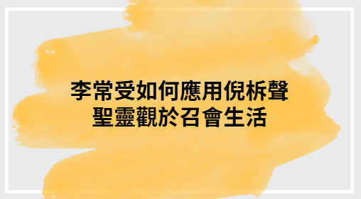 李常受承接这一点,将“圣灵内住的经历”翻译成“操练人灵”