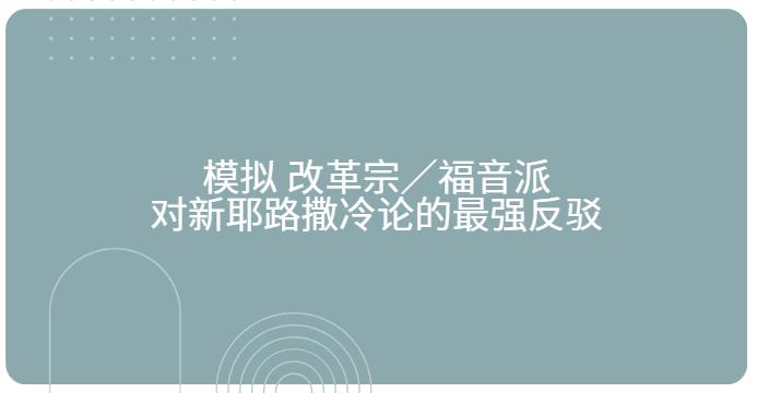 反过来:从改革宗立场写一篇“最强反新耶路撒冷论”文章