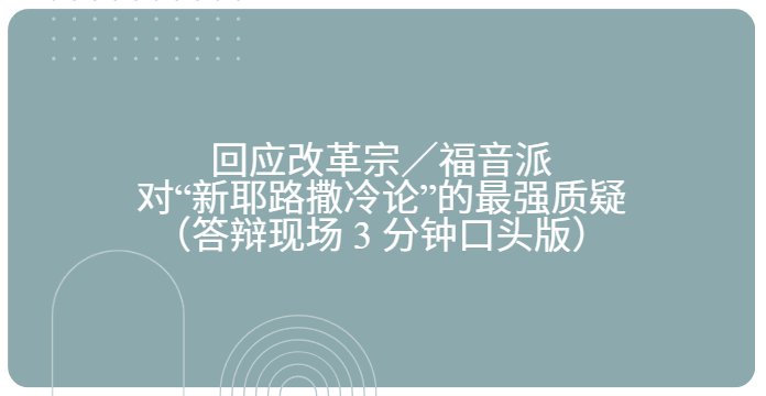 回应改革宗/福音派对“新耶路撒冷论”的最强质疑