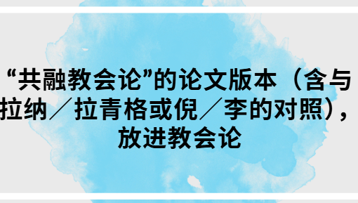 • 关键:教会是参与的历史性场域(corpus mysticum)