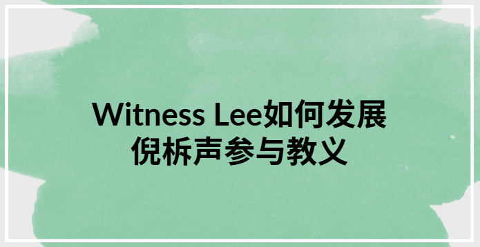 最后,Witness Lee 也把倪原先比较分散的属灵实践,转化为一套高度“参与式”