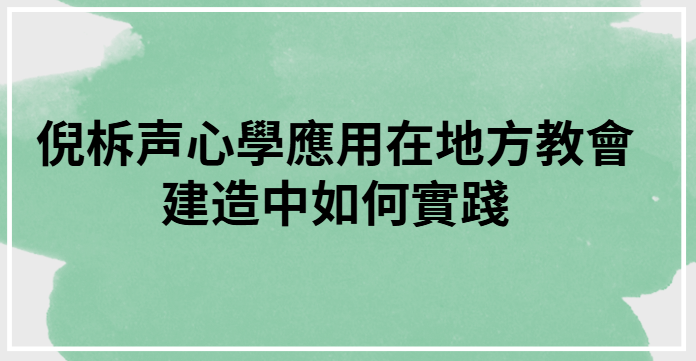 – 真知=把地方教会与身体看为神计划中心,真行=实在投身其间、受其约束与调整。