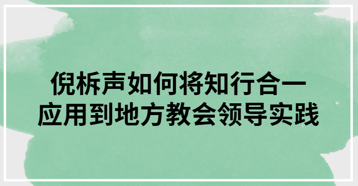 领导实践中的“知行合一”,就是:你对教会论、权柄、合一、服事的任何见解,都要先在自己身上被执行,才有资格成为教会的带头人。