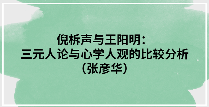 在静态结构上,王阳明和倪柝声的身体观都是三分的。在王阳明是“心、意、物”,“物”包含身和事,这构成了王阳明心学人观的现象世界,而“心”和“意”则构成了心学人观的内心世界。在倪柝声则是“灵、魂、体”,“体”是人的肉体,构成了现象世界的重要部分,而“灵”和“魂”则构成了人的内心世界。两者虽然在具体的认知上有所区别,但就其认知的背景而言,有很多相似性。由于王阳明对“身”“物”“事”的论述常混合在一起,较少有专门针对肉体的论述,因此下面分别从三分法、心与灵、意与魂三个方面展开比较。
