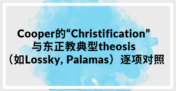 ### Cooper“Christification” vs 东正教典型 theosis(Lossky/Palamas)