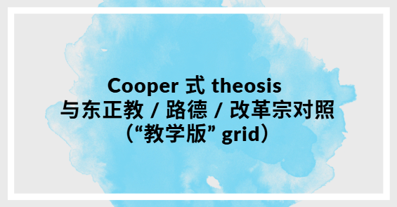 如果你想,我可以再单独做一张更小的对照表,只列 Cooper vs 典型改革宗 theosis(不含东正教和 Luther),专门针对改革宗/福音派课堂,用来说明: