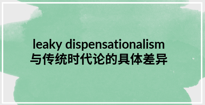 – MacArthur 式 leaky dispensationalism:只保留“以色列—