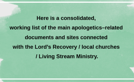 先给一个总览:主恢复(倪柝声、李常受及地方召会)直接与“辩护/护教”相关的资料,大致可分为三大类:( […]