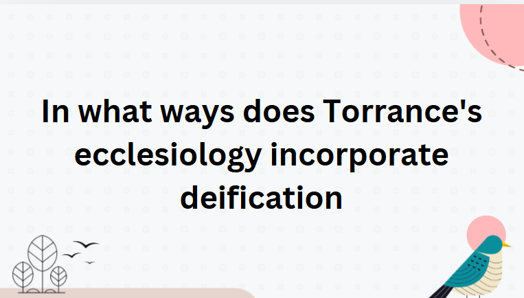 – Myk Habets argues that Torrance’s ecclesiology is a “theotic communion ecclesiology”: the church exists to be the sphere where the Spirit actualizes theosis—our transformation into Christ‑conformed sons and daughters.[6][3]
